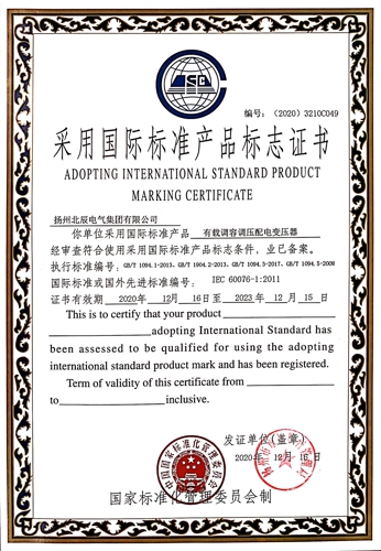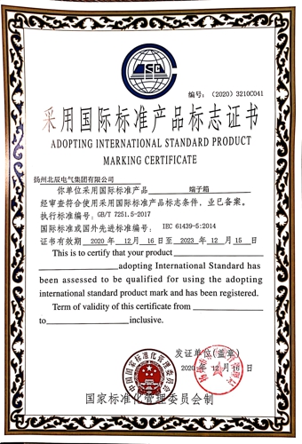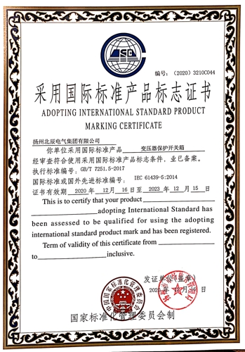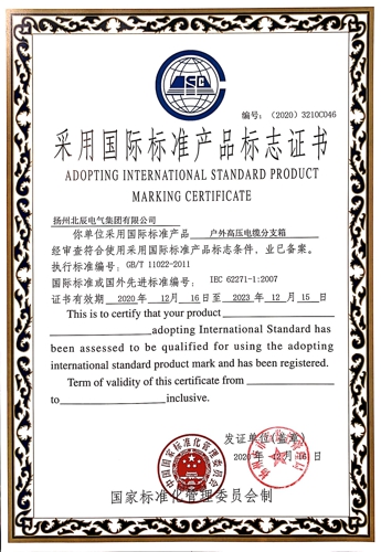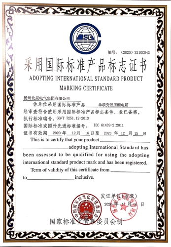 近日,經(jīng)過(guò)專(zhuān)業(yè)機(jī)構(gòu)審核檢測(cè),揚(yáng)州北辰電氣集團(tuán)有限公司自主生產(chǎn)的端子箱”、“變壓器保護(hù)開(kāi)關(guān)箱”、“戶外高壓電纜分支箱”等種產(chǎn)品,榮獲國(guó)家標(biāo)準(zhǔn)化管理委員會(huì)頒發(fā)的“采用國(guó)際標(biāo)準(zhǔn)產(chǎn)品標(biāo)志證書(shū)”。現(xiàn)公司已累計(jì)有29種產(chǎn)品獲得了采標(biāo)證書(shū),標(biāo)準(zhǔn)化建設(shè)已處于行業(yè)前列。