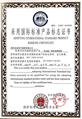 采用國(guó)際標(biāo)準(zhǔn)產(chǎn)品標(biāo)志證書(shū)是我國(guó)產(chǎn)品采用國(guó)際標(biāo)準(zhǔn)的一種專(zhuān)用說(shuō)明標(biāo)志,是企業(yè)對(duì)產(chǎn)品質(zhì)量達(dá)到國(guó)際標(biāo)準(zhǔn)或國(guó)際先進(jìn)水平的自我聲明形式,也是客戶認(rèn)準(zhǔn)質(zhì)量的依據(jù)。北辰公司多項(xiàng)產(chǎn)品取得采用國(guó)際標(biāo)準(zhǔn)產(chǎn)品標(biāo)志證書(shū),標(biāo)志著公司的產(chǎn)品系采用國(guó)際標(biāo)準(zhǔn)或國(guó)外先進(jìn)標(biāo)準(zhǔn),質(zhì)量已經(jīng)達(dá)到了國(guó)際標(biāo)準(zhǔn)或國(guó)際先進(jìn)水平,產(chǎn)品可靠有保證,客戶可以充分信任。