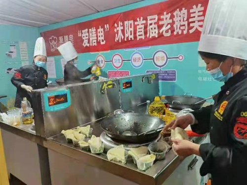 隨著“低碳時代”逐漸來臨,電能取代傳統(tǒng)的木柴、煤炭、燃油、燃?xì)獾饶茉匆咽谴髣菟叀<瘓F(tuán)公司積極響應(yīng)國網(wǎng)公司電能替代、節(jié)能節(jié)碳的號召,與揚(yáng)州綜合能源公司一同打造并推廣愛膳電全電廚房產(chǎn)品,助力國家“雙碳”目標(biāo)實(shí)現(xiàn)。本次“老鵝”美食節(jié)的成功舉辦,是愛膳電品牌走向省內(nèi)市場的一大步,也是向 “3060雙碳”目標(biāo)戰(zhàn)略交出的一份“北辰方案”。