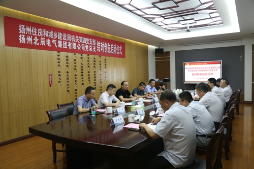 7月21日,揚州北辰電氣集團有限公司黨總支與揚州市住房和城鄉(xiāng)建設局機關第四黨支部舉行結對創(chuàng)先簽約儀式,雙方通過黨組織結對共建,共同謀劃黨建工作新思路,不斷提升為民服務水平,協(xié)力為建設好揚州這個“好地方”貢獻智慧。揚州市住房和城鄉(xiāng)建設局領導顧健參加活動。
